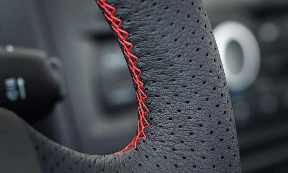 • Отделка руля, чехла КПП кожей с красной отстрочкой